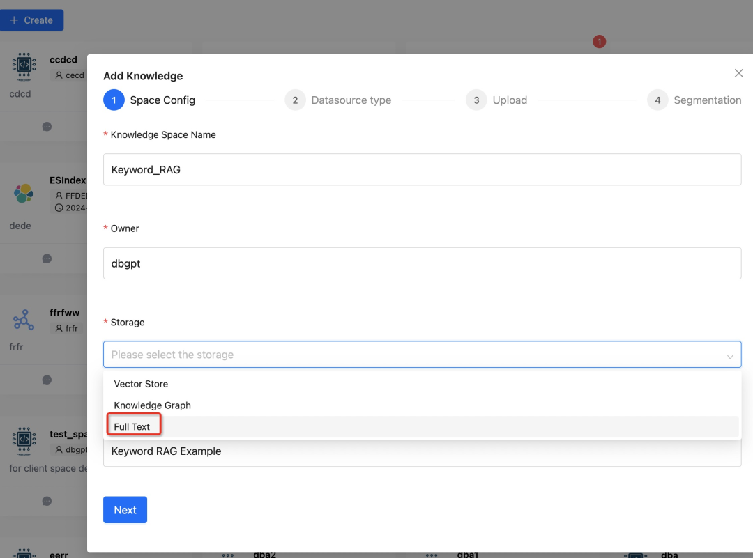 ELASTICSEARCH_URL=localhostELASTICSEARCH_PORT=9200ELASTICSEARCH_USERNAME=elasticELASTICSEARCH_PASSWORD=dbgpt Full Text