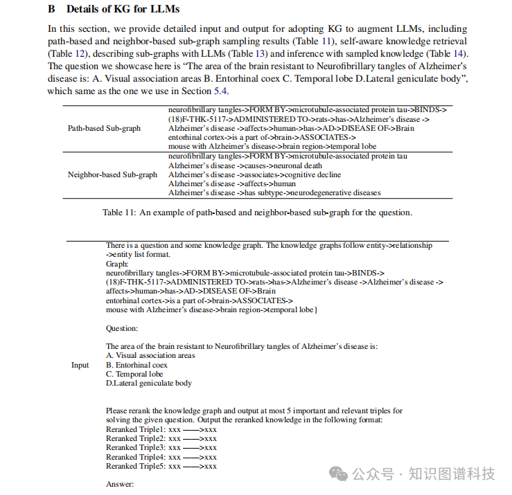 在我们的初始实验中,我们注意到以上方法采样的粗粒度知识仍然包含冗余和无关信息。噪音问题是自动构建的知识图中经常遇到的共同挑战。此外,许多最近的研究表明LLM实际上可能受到这些嘈杂信息的影响。为了解决这一挑战,我们借鉴了最近的自我动力LLM的见解,并提出了一种自感知知识检索方法,以利用LLM的排名能力来过滤噪音信息。 具体而言,我们直接提示LLM重新排列采样的知识,并仅检索前k个三元组,以提供给自己在最终推理中使用。给定问题?以及基于路径或基于邻居的子图??,我们通过填充预定义模板创建提示?????: