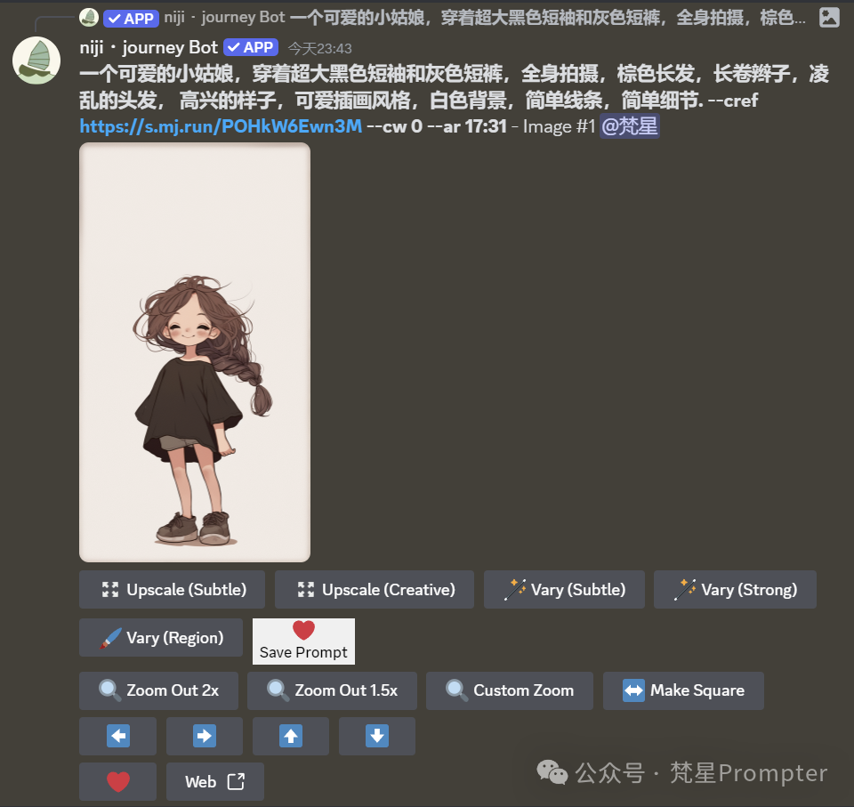 今天简单的说下出图小技巧,大家找到喜欢的萌图后,通过MJ反推提示词,通过角色一致性的命令就可以生成各种动作和表情的图片。