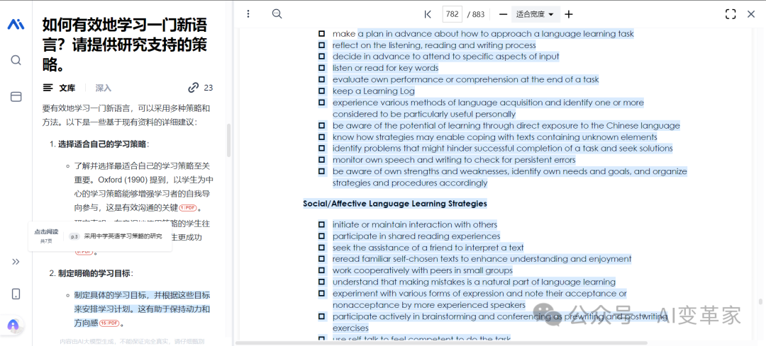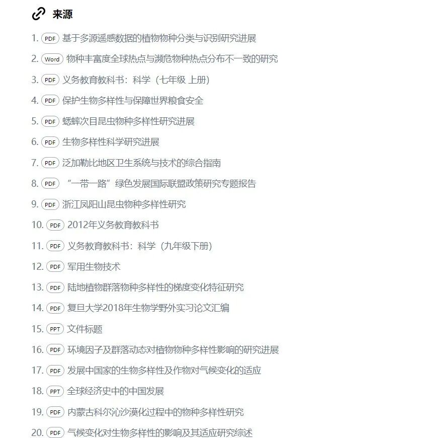 文献查找:比如说,你急需一份关于“人工智能发展史”的资料,输入关键词,按下回车,就给你找到了,比原来全网搜关键词要方便多了。 想要找论文,可以输入:请帮我找到关于可持续发展的最新研究论文。 论文引用:比如说,你想引用论文,也可以找到,以列表方式给你弄好了。