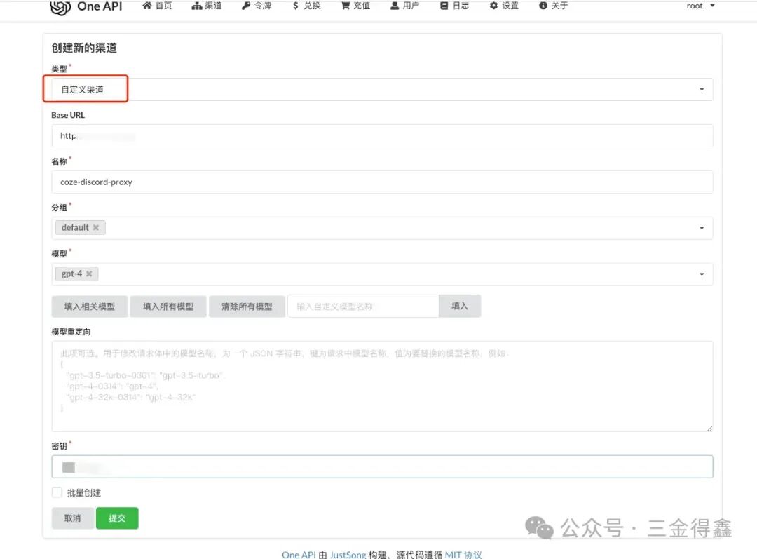 这里我们结合之前部署过的 coze-discord-proxy 做自定义渠道: