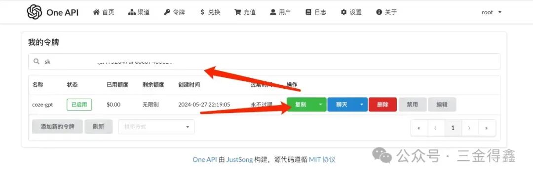 部署在基于 Docker 进行部署时,可以根据自己规划的并发量来选择使用 SQLite 还是 MySQL,如果并发量比较大,务必设置SQL_DSN。 docker run --name one-api -d --restart always -p 3000:3000 -e TZ=Asia/Shanghai -v /home/ubuntu/data/one-api:/data justsong/one-api # 或者 docker run --name one-api -d --restart always -p 3000:3000 -e SQL_DSN="root:123456@tcp(localhost:3306)/oneapi" -e TZ=Asia/Shanghai -v /home/ubuntu/data/one-api:/data justsong/one-api