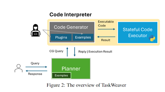 在代码执行器执行完一轮任务后,会将结果发送给规划器,完成一次子步骤。再由规划器决定触发下一子步骤的执行任务,并重复以上流程。 本文素材来源TaskWeaver论文,如有侵权请联系删除ingFang SC", "Hiragino Sans GB", "Microsoft YaHei UI", "Microsoft YaHei", Arial, sans-serif;font-size: 12px;letter-spacing: 0.544px;background-color: rgb(255, 255, 255);visibility: visible;">