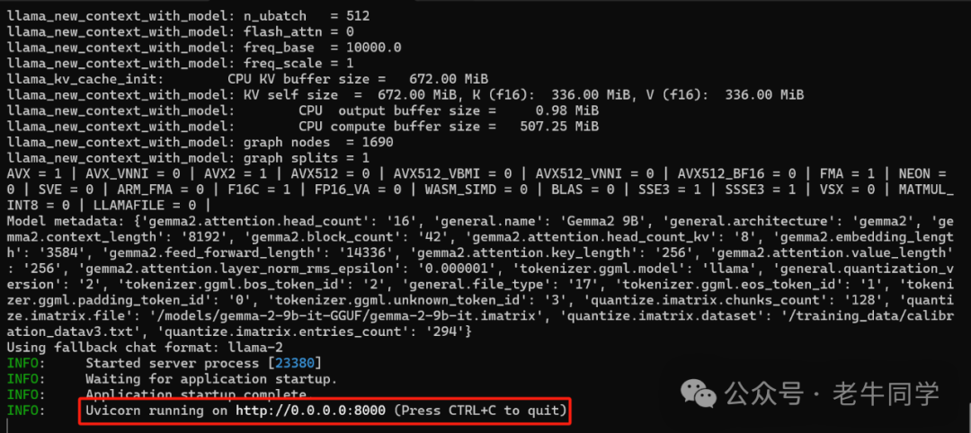 #启动Llama大模型python-mllama_cpp.server--host0.0.0.0--model./Gemma-2-9B-it-Q5_K_M.gguf--n_ctx2048