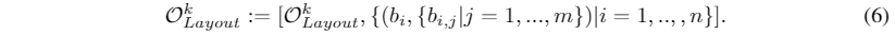 其中S为生成图像的期望大小。每个生成的边界框b由其左上角、宽度和高度的坐标表示。为了便于后续的图像生成和布局细化,我们还在Ok layout 中维护了主题信息。Ok layout的格式为: