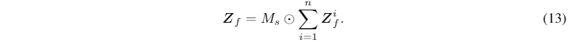 为了减少不同主体之间的相互干扰,我们用Zi f对应的二值掩码进行滤波,特征表示如下:
