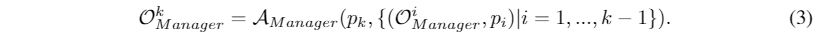 主题管理器。我们采用分而治之的策略,首先利用A Manager来处理提示并标识每个主题。我们通过输入pk以及A Manager之前的所有提示符和相应的输出来生成Ok Manager: