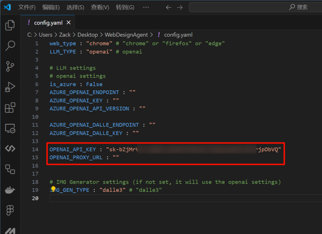 - OPENAI_API_KEY:必填,这里填入OpenAI官方的APIkey(也可以填入中转的key)。OPENAI_PROXY_URL :非必填,有中转需要在这里填入中转地址。