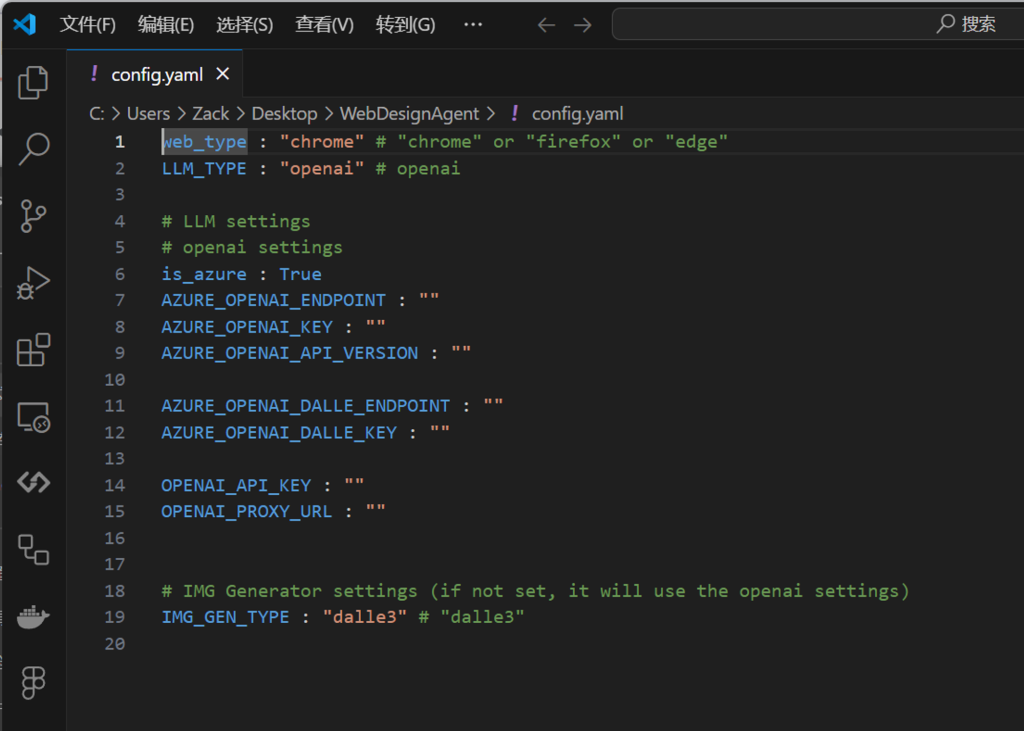 - AZURE_OPENAI:这里需要有微软的AzureKey,如果没有的话,需要改is_azure:False具体如何获取就不介绍了。