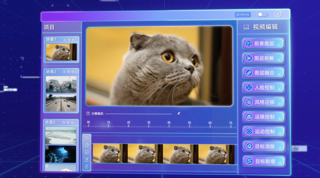 「我们的目标是用 AI 能力去重塑传统视频制作的整个流程,打造 AI 时代的全新视频工作流。寻光视频创作平台,最大的特点是让用户实现对视频内容的精准控制,同时可以保持多个视频中角色和场景的一致性。」陈威华说道。