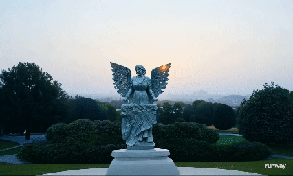上面只是Gen-3的标准提示结构,如果你对镜头场景要求不高不加也没问题。例如,飞越一座爱尔兰的城堡,并发现了一座摩天大楼的未来赛博朋克城市。