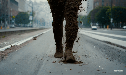 下面这些提示词展示,可以在文本生成的过程中直接使用,帮助你精准掌控视频呈现的镜头风格。 方法就是——相机风格关键词+文本提示词+额外细节。例如,低角度,一个正在行走在街道上的泥土人,周围是朦胧的街道。 低角度