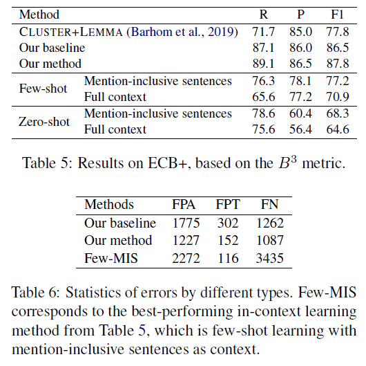 直接用LLM预测CDECR的结构。我们使用不同的上下文学习方法(包括few-shot和zero-shot学习),在不同的上下文(如完整上下文和包含提及的句子)下测试GPT-4的性能。