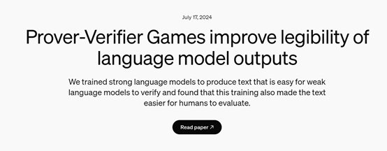 7月18日凌晨,OpenAI在官网发布了最新技术研究——Prover-Verifier-Games。
