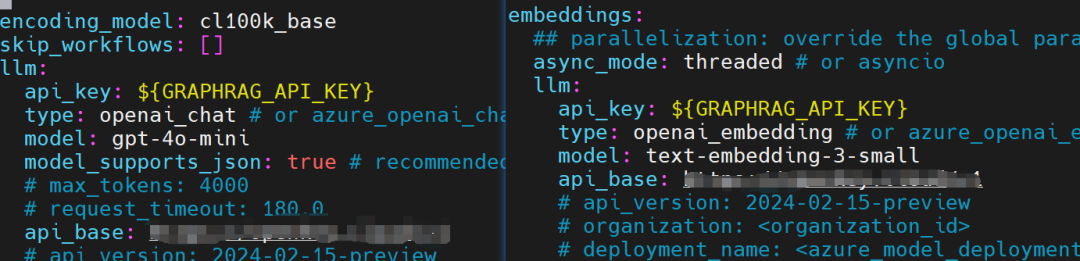 .env包含运行 GraphRAG 管道所需的环境变量。如果检查文件,将看到已定义的单个环境变量。 GRAPHRAG_API_KEY=<API_KEY>这是 OpenAI API 或 Azure OpenAI 端点的 API 密钥。可以将其替换为自己的 API 密钥。settings.yaml包含管道的设置,可以修改此文件以更改管道的设置。