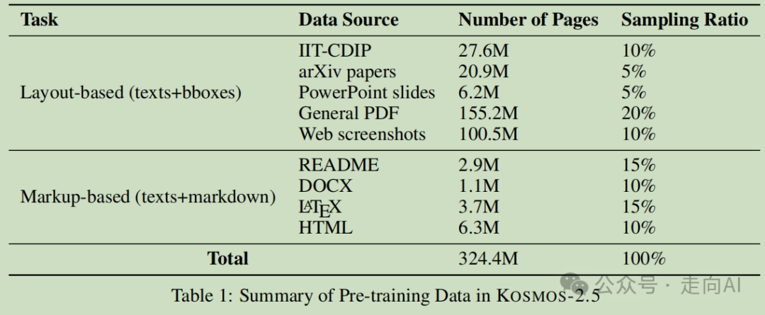 通过这种预训练方法,KOSMOS-2.5能够处理结构化信息,维护原始文档的顺序和结构完整性,这对于文本密集图像理解任务至关重要。