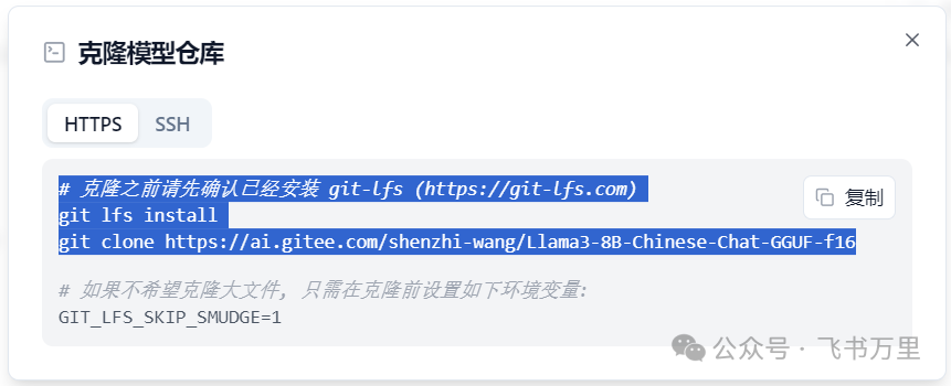 克隆时间与网络速度和模型大小有关,请耐心等待。