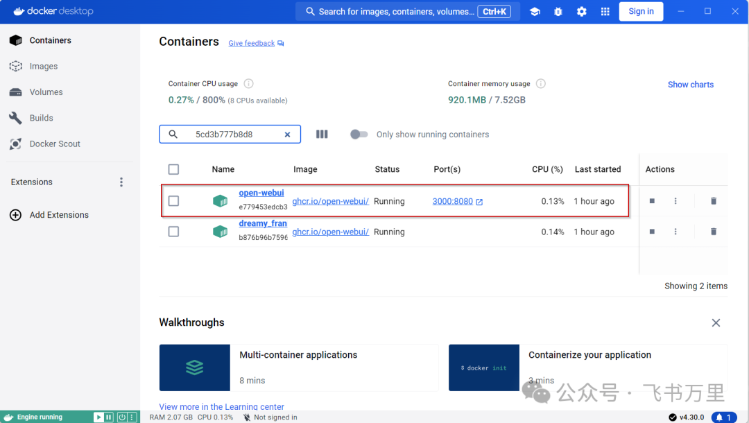 安装完成后启动Docker应用程序,将看到OpenWebUI