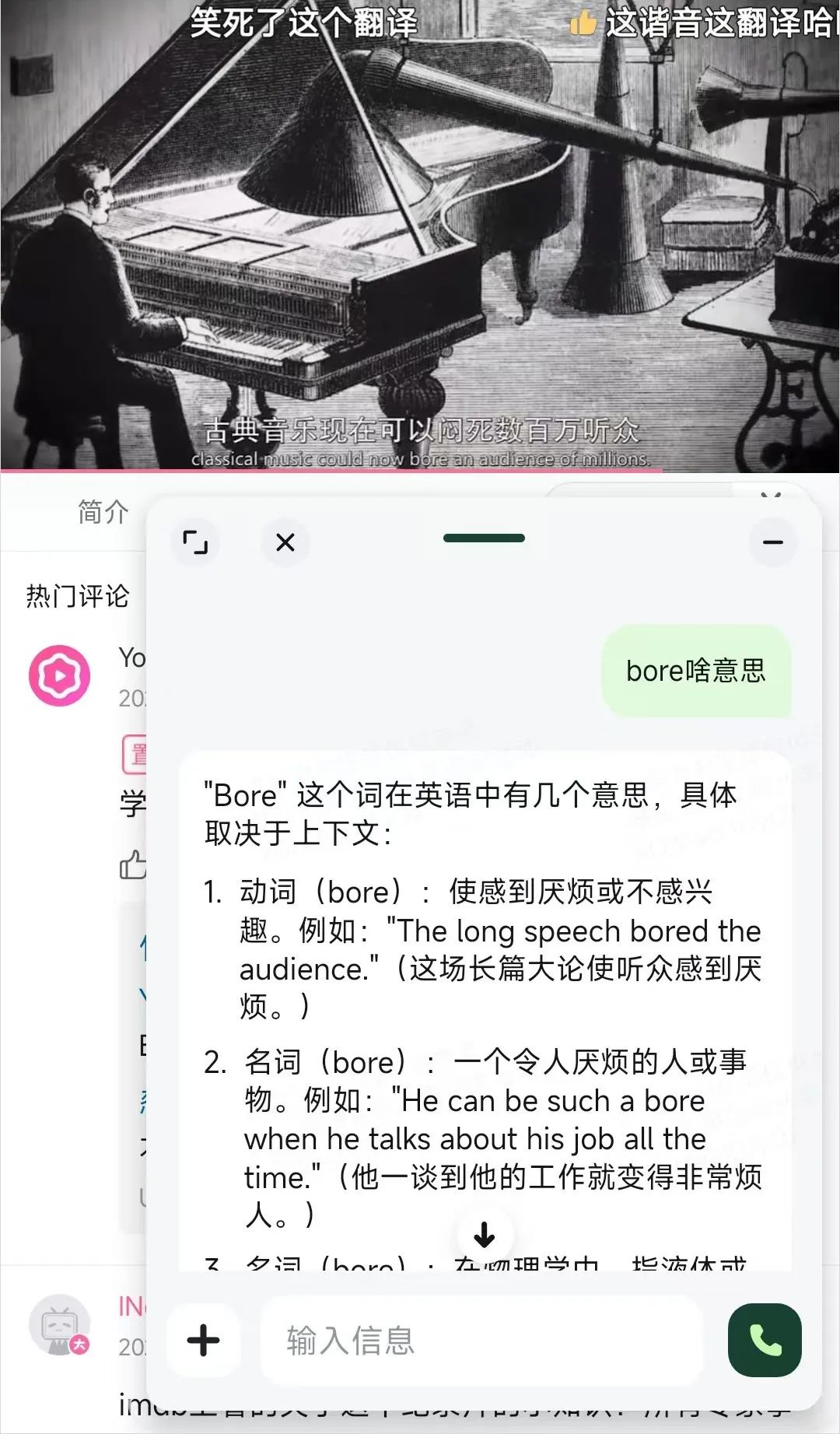 而这次有了海螺AI的悬浮球,我就直接把那个单词在悬浮球里敲给了海螺AI,直接秒回答,而且一点不影响我看片子。