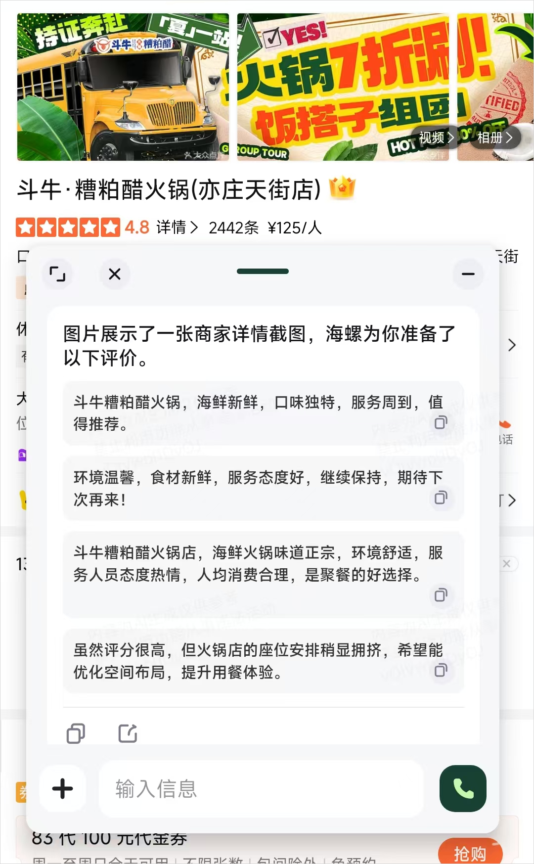 这个识屏也可以去写那些好评返现的店,比如我打开大众点评,直接在他们页面上截个图。评价就自动写完了。
