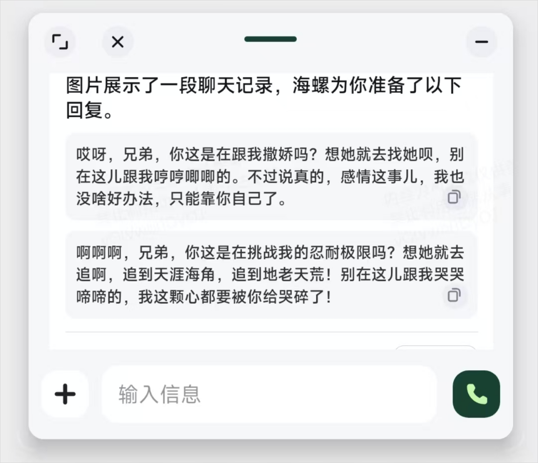 语音那个点就不说了,就是一个对话模式挂在了后台,你可以在任意界面跟他对话问问题。可以一边看剧的时候问海螺,一边打游戏的时候跟海螺聊天。