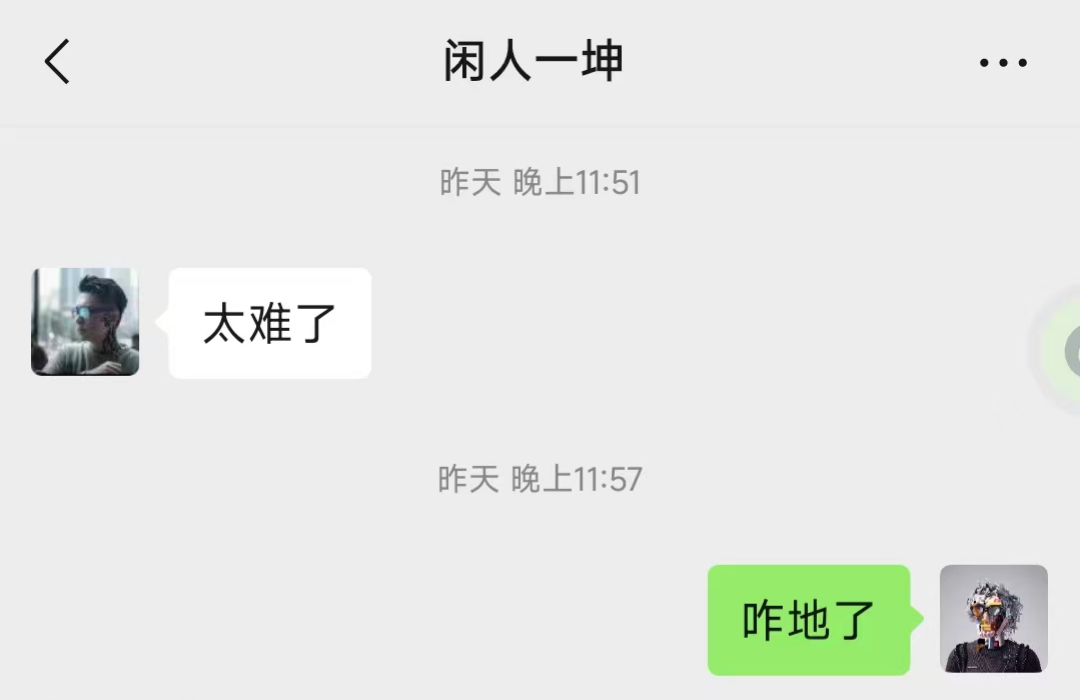 真的,失恋中的男人太可怕了,那话痨的,跟什么一样,作为兄弟,不回也不合适,但是回吧,我又不知道回啥。