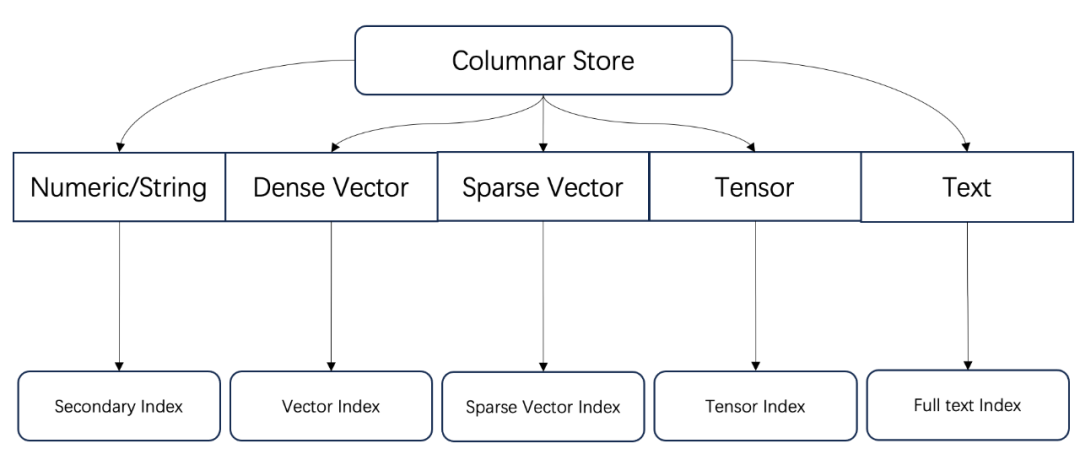 存储引擎方面,Infinity 建立了完整的以列存为基础的索引体系,对于多路召回的每一路,都有相对应的索引负责高性能检索,这也使得 Infinity 添加新的类型支持变得非常方便。因此,Infinity 可以看做是一个以列存为基础的全索引数据库,这跟近期 OpenAI 收购的 Rockset 有着相似的特性,而在索引的类型上,Infinity 则提供更加丰富的选择。