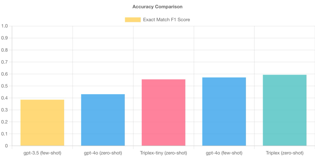 性 能 性能测试表明,Triplex 在成本和性能上都显著优于 GPT-4o。 准确性对比