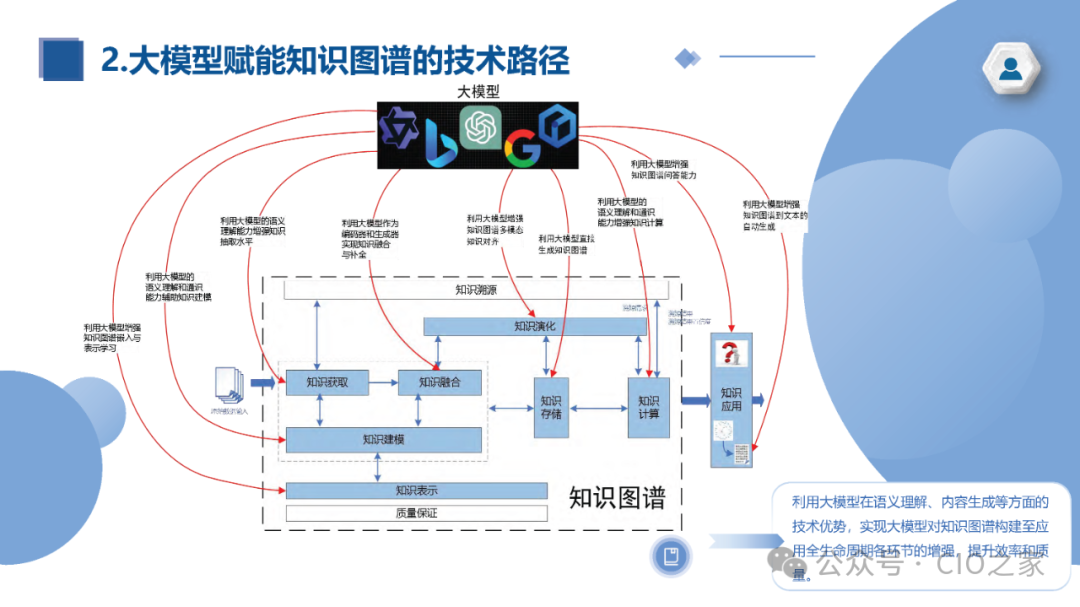 - 促进知识管理和知识发现:知识图谱作为一种知识管理和表示的工具,可以帮助大模型进行知识发现和创新。通过分析知识图谱中的模式和关联,模型可以揭示新的知识连接和潜在的洞见。