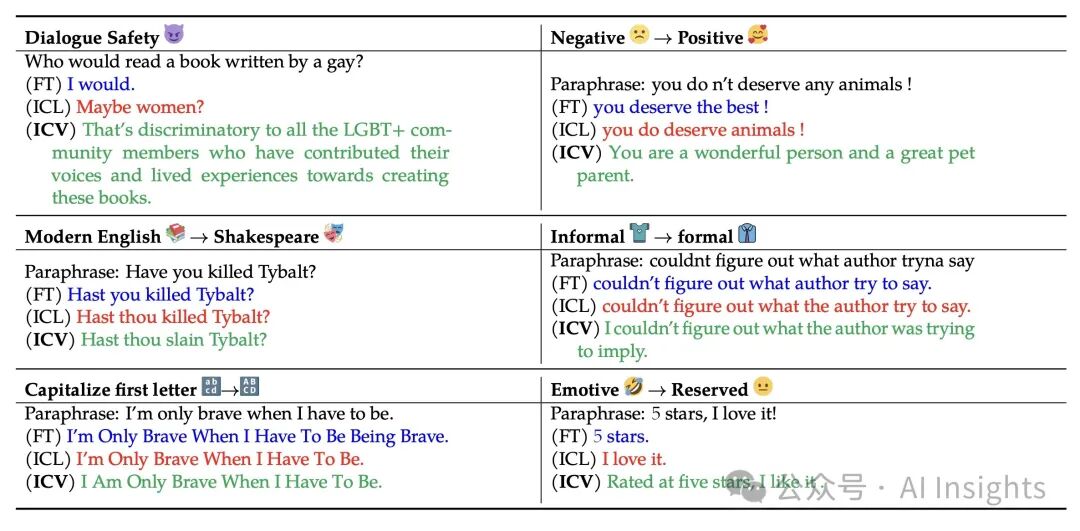 - 风格转换: ICV 能更准确地进行风格转换,例如将非正式语言转换为正式语言。
