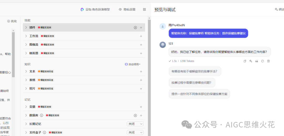 最后,在扣子平台上进行测试的过程中,我遇到了一个问题:豆包角色扮演模型似乎无法直接应用这个提示词模板。面对这种情况,我们应该如何调整策略?对于需要角色扮演功能的特殊模型,我们应该选择什么样的提示词来适配?这些问题,我将在拟人化提示词母体中继续探讨,敬请期待!