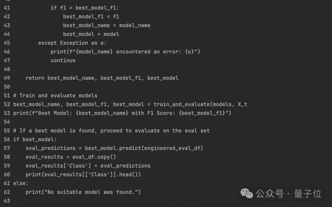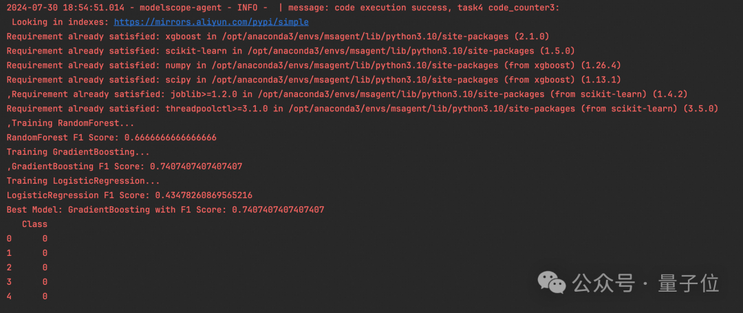 Task 4:模型训练DS Assistant主动安装了合适的依赖,并选择了多个模型(随机森林,梯度提升,逻辑回归)进行训练,并选择了结果最好的模型。