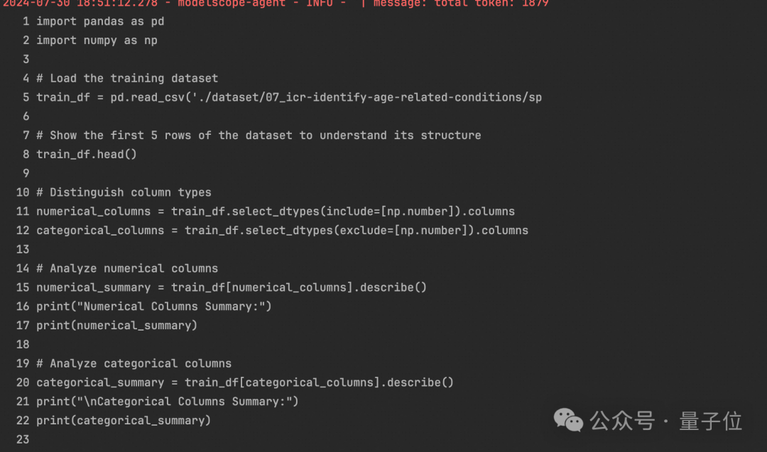 llm_config={ 'model':'qwen2-72b-instruct', 'model_server':'dashscope', } tool_recommender=TypeMatchToolRecommender(tools=["<all>"]) ds_assistant=DataScienceAssistant(llm=llm_config,tool_recommender=tool_recommender) ds_assistant.run( "Thisisamedicaldatasetwithoverfiftyanonymizedhealthcharacteristicslinkedtothreeage-relatedconditions.Yourgoalistopredictwhetherasubjecthasorhasnotbeendiagnosedwithoneoftheseconditions.ThetargetcolumnisClass.Performdataanalysis,datapreprocessing,featureengineering,andmodelingtopredictthetarget.ReportF1Scoreontheevaldata.Traindatapath:‘./dataset/07_icr-identify-age-related-conditions/split_train.csv',evaldatapath:‘./dataset/07_icr-identify-age-related-conditions/split_eval.csv'." )