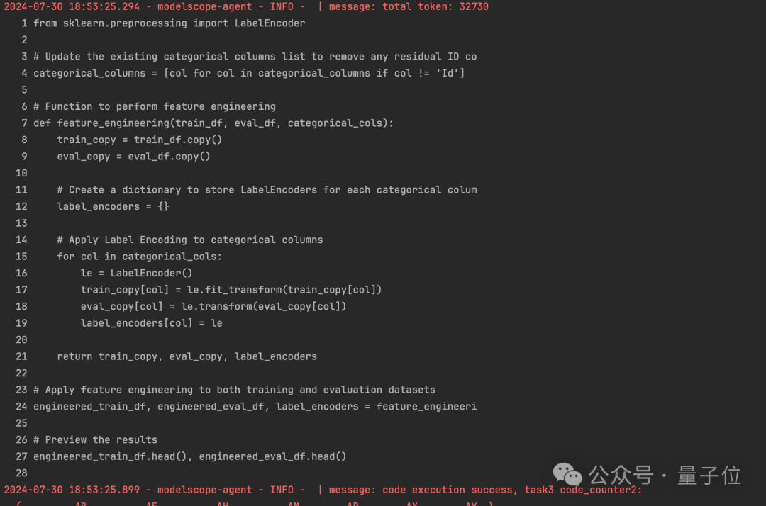 Task 3:特征工程在修复了两次错误后,DS Assistant对数据进行了特征工程的处理,对类别型变量进行编码。 同时对之前定义的categorical_columns变量进行了更新,去除了ID列。