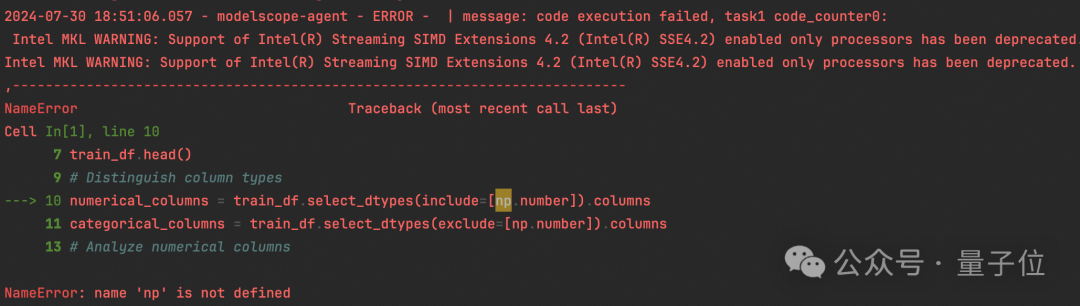 可以看到生成的代码在执行时报了如下错误,原因是没有引入numpy包。