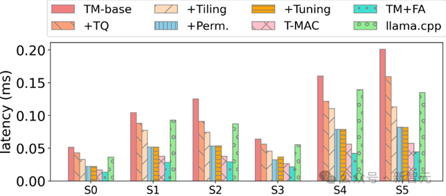 图7:在实现各种优化后,T-MAC 4-比特算子最终相对于llama.cpp 获得显著加速