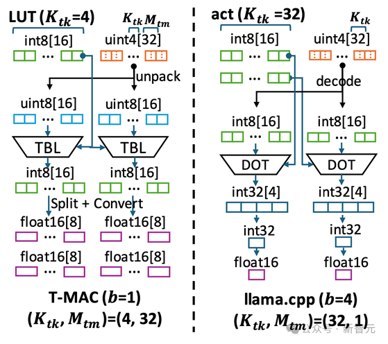 图6 T-MAC与llama.cpp在计算数据流上的不同