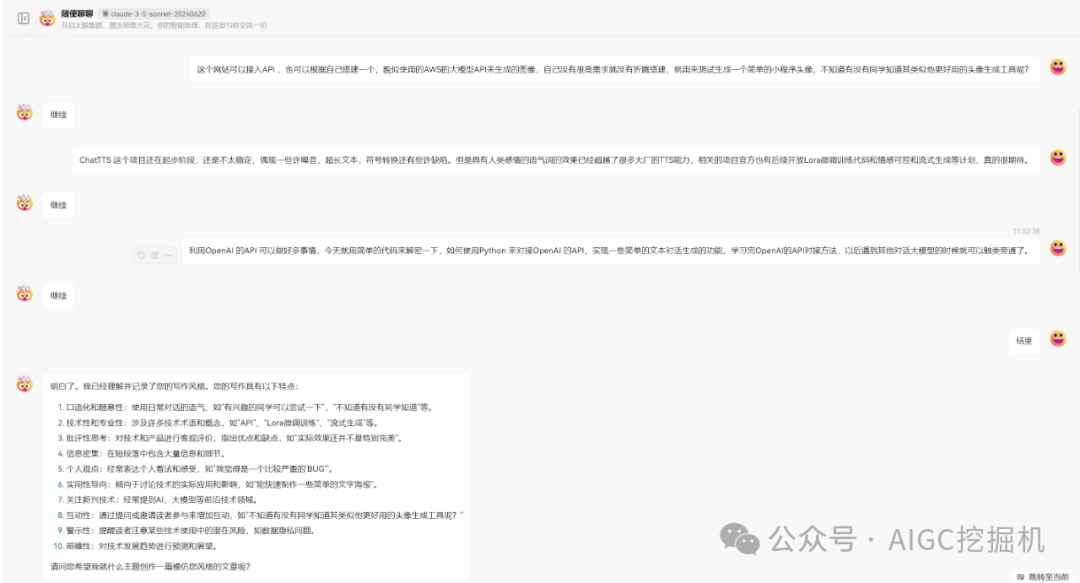 在日常的文章创作中有些内容填充需要用AI来润色,自己试过很多AI帮助我写文章,其中不乏效果不错的东西,但是没有找到真正惊艳到我的工具或者技巧,今天找到了一个来自外网老哥分享的创作技巧,主要是使用特殊的prompt 告诉AI模拟自己的写作风格来写文章,特别是在Claude系列模型中最有效果。