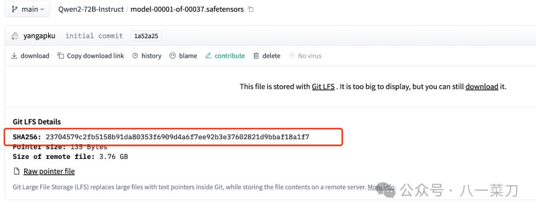 权重文件下载不完全在本次部署过程中,碰到了下载模型权重文件不完整的情况,导致通过vLLM部署不起来,可以通过Linux的命令sha256sum工具来对模型权重文件进行检查,对比网站上的模型权重文件的sha256是否一致,如果不一致,需要重新下载安装 命令如下: sha256sumyour_local_file