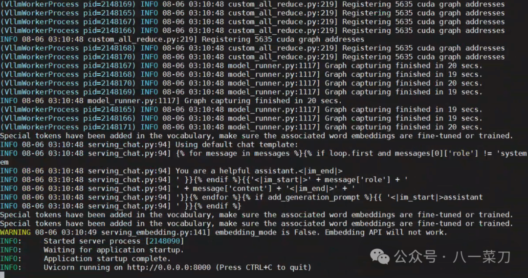 python3-mvllm.entrypoints.openai.api_server--model/mnt/torchv/models/Qwen2-72B-Instruct--served-model-nameQWen2-72B-Instruct--tensor-parallel-size8--gpu-memory-utilization0.7