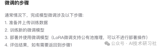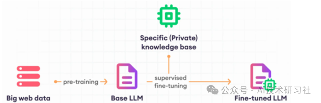 当这些方法都无法有效解决问题时,就需要对LLM进行微调。与预训练阶段不同,微调是一个监督学习过程,它使用标记好的示例数据集来更新模型的权重,从而使模型更好地完成特定任务。通过这种方式,微调能够针对特定的业务场景或任务需求,对基础模型进行少量调整,以低成本、高效率地定制出更符合实际需求的专属大模型。