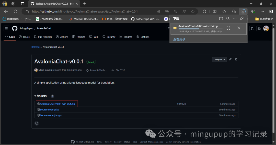 点击AvaloniaChat-v0.0.1-win-x64.zip就会在下载了: