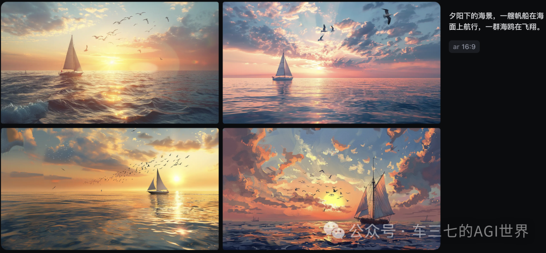 4. 形容词: 用来描述名词的特征或性质的词语,如“漂亮的”、“高大的”、“快乐的”等。 与动词类似,使用形容词应精准具象,尤其是在描述对象特征时应给出具体范围。例如“很大的”到底指多大?“很多的”到底是多少? 除非你自己也没有明确的概念,想让AI自由发挥,来激发你的灵感。 5. 副词: 用来修饰动词、形容词、其他副词或整个句子的词语,如“快速地”、“非常”、“可能”等。与形容词类似,使用副词也应精准具象。 6. 代词: 用来代替名词的词语,如“我”、“你”、“他们”等。 一般来说代词也是语法结构逻辑上的概念,AI绘画模型不是大语言模型,所以AI对于代词的理解有欠缺,尽量不使用代词指代。 - 除此之外,还要注意: 1. 明确表达需求图像: 输入提示词时专注描写你所需的图像,明确告诉它你想要什么,而不是告诉它你不想要什么,这样可以减少歧义,提高生成结果的准确性。 例如你输入的自然语言是“不要帽子”、“别出现气球”这样的词语,但AI可能无法理解“不要”、“别出现”,所以AI生成的图片反而会出现帽子、气球等。 如果你确实不希望出现某些内容,可以使用—no参数,例如:“顶视图,美味的牛肉拉面,碗里还有两个溏心蛋,美食摄影 — no 勺子”。 2. 靠前的词汇权重高: 在处理输入时,AI会优先识别和考虑更靠前的词汇信息,因此在输入框中可将重要信息优先输入,而不必考虑人类习惯的语言表达顺序。 例如“夕阳下的海景,一艘帆船在海面上航行,一群海鸥在飞翔”和“夕阳下的海景,一群海鸥在飞翔,一艘帆船在海面上航行”相比,因为第二句海鸥在前,所以概率上,海鸥在画面中会大一些。