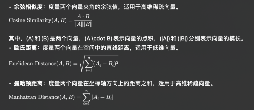 每种距离度量方法都有其适用的场景和特点,选择合适的距离度量方法对于提高向量检索的准确性和效率至关重要。
