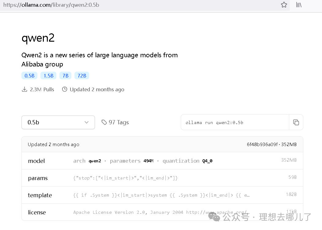 Code 与 CodeQwen 之间的交互变得异常迟缓,每一次等待都如同漫长岁月,让人心急如焚。 面对板载内存无法升级的无奈困境,我几乎要放弃希望,但命运似乎总在不经意间在转角处留下惊喜。在 ollama 网站的一次偶然邂逅,Qwen2的0.5B模型犹如夜空中最耀眼的星辰,为我指引了前行的方向。这个仅有352M(对,你没听错,是M,而非G!)的轻量级模型,仿佛是为我的笔记本量身定制,完美贴合了我的需求,一下子就让我的编程体验变得顺畅多了,感觉像是打开了新世界的大门。