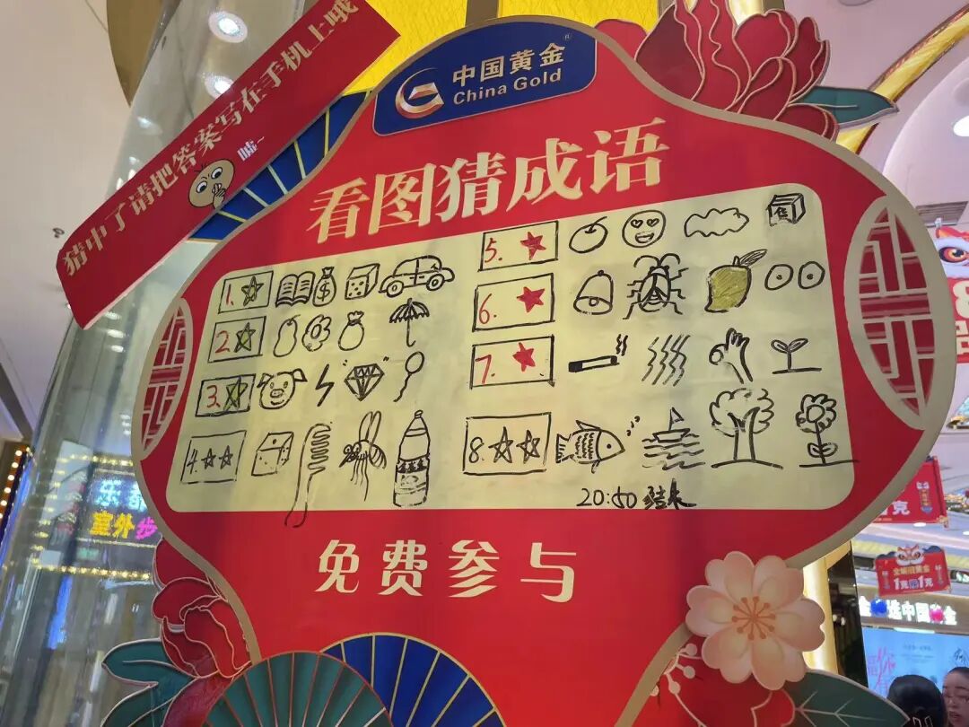 老婆逛商场时,看到中国黄金在做一个看图猜谜语的活动,于是发给我让我猜。