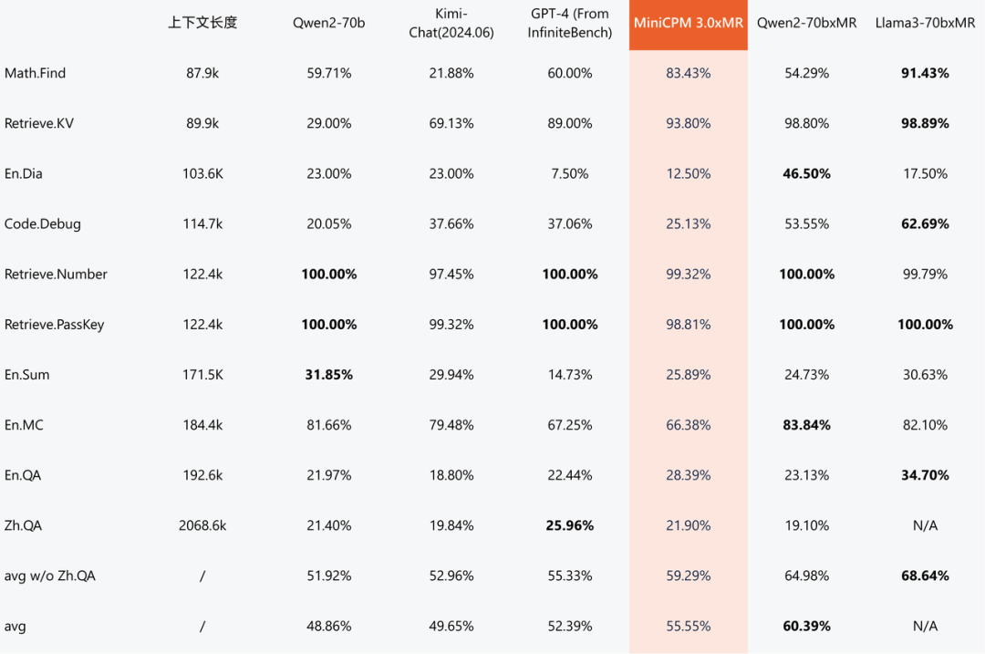 ① MiniCPM 3.0 表现超越 GPT-4、KimiChat、Qwen2-70B;