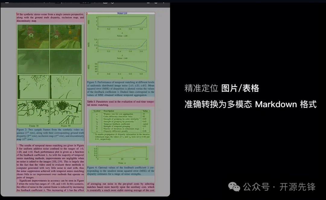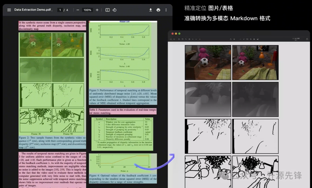 • 图像和表格提取:文档中的图像、表格也能被准确提取,并嵌入到Markdown中,方便后续编辑和展示。