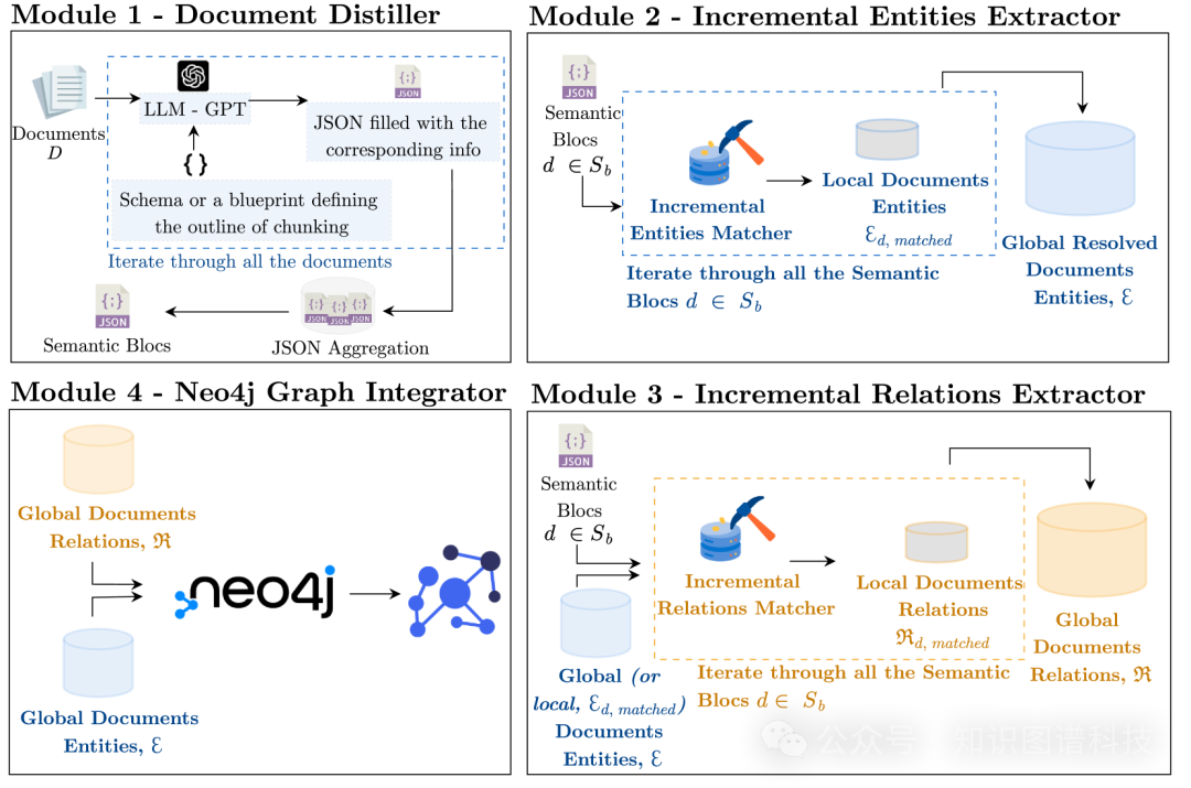 本文介绍了一种名为 iText2KG 的增量式知识图谱构建方法,该方法利用大型语言模型 (LLM) 从原始文档中构建知识图谱,并通过四个模块(文档提炼器、增量实体提取器、增量关系提取器和图谱集成器)实现增量式知识图谱构建,无需事先定义本体或进行大量的监督训练。 #### Key Takeaways - 大多数可用数据是非结构化的,这对获取有价值的信息提出了挑战。 - 自动构建知识图谱 (KG) 对结构化数据并使其可访问至关重要,这使用户能够有效地搜索信息。 - 传统方法,如命名实体识别和关系提取,在信息检索中发挥关键作用,但存在局限性,包括使用预定义的实体类型和对监督学习的需求。 - iText2KG 是一种增量式、主题独立的 KG 构建方法,无需后期处理。 - 该方法包括四个模块:文档提炼器、增量实体提取器、增量关系提取器和图集成器和可视化。 - iText2KG 在将科学论文、网站和简历转换为图谱的三个场景中都表现出了优于基准方法的性能。 - 该方法还解决了其他方法中常见的语义重复和未解决实体的问题。 Source: https://arxiv.org/pdf/2409.03284 Keywords:3(C1)实体 e i ∈ E ,实体集和关系 r k ∈ R ,关系集,都应该描述语义上唯一的概念。 (C2)实体和关系集应包含语义上唯一的元素。这意味着知识图谱中的每个实体和关系都必须是不同的和唯一的,没有重复或语义重叠。