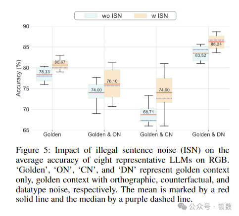 数值结果凸显了 RAG 噪声对LLMs的双重影响。非法句子噪声 (ISN) 等有益噪声持续将模型准确率提高了 3.32%,从而增强了推理和响应信心。相反,有害的噪声类型,如反事实噪声 (CN) 和正交噪声 (ON),会降低性能,扰乱事实辨别。NoiserBench 评估框架由视觉和统计分析支持,强调了管理噪声类型以优化 RAG 系统中LLM性能的重要性。
